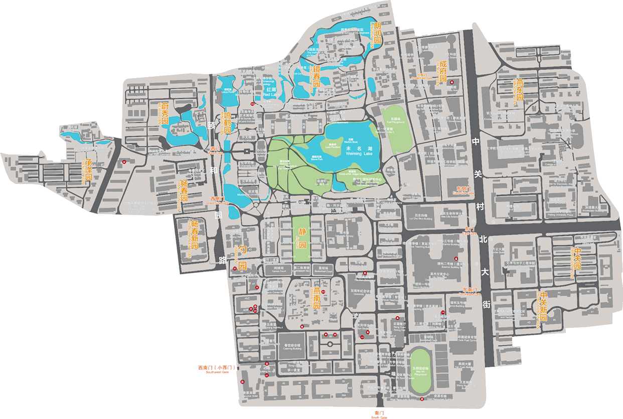 北京大學(xué)校本部坐落在燕園,包括淑春園、勺園、朗潤園、鏡春園、鳴鶴園、蔚秀園、暢春園、承澤園等, 每逢節(jié)日,博雅塔會亮起絢爛的燈光,在明清兩代是著名的皇家園林,數(shù)百年來,其基本格局與神韻依然存在。校園北與圓明園毗鄰、西與頤和園相望。北京大學(xué)充分利用了這一難得的歷史遺產(chǎn),營建了風(fēng)景如畫的校園環(huán)境,使之既有皇家園林的宏偉氣度,又有江南山水的秀麗特色。這里不僅有亭臺樓閣等古典建筑,而且山環(huán)水抱,湖泊相連,堤島穿插,風(fēng)景宜人。校園內(nèi)古木參天,綠樹成蔭,四季常青,鳥語花香,園林景色步移景異。優(yōu)美典雅的環(huán)境內(nèi)充滿著豐富多彩、魅力無窮的校園生活,使學(xué)生可以同時感受到自然的風(fēng)景和濃厚的人文氣息。未名湖與博雅塔是北京大學(xué)的標(biāo)志性景觀,美麗的湖光塔影伴隨著大師的背影,構(gòu)成燕園中最美的圖畫。著名的“一塔湖圖”指的就是未名湖湖畔的景色。